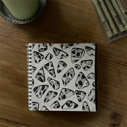 Réalisation de plus de 80 illustrations à l'encre : motifs, lignes, illustrations abstraites ou organiques
