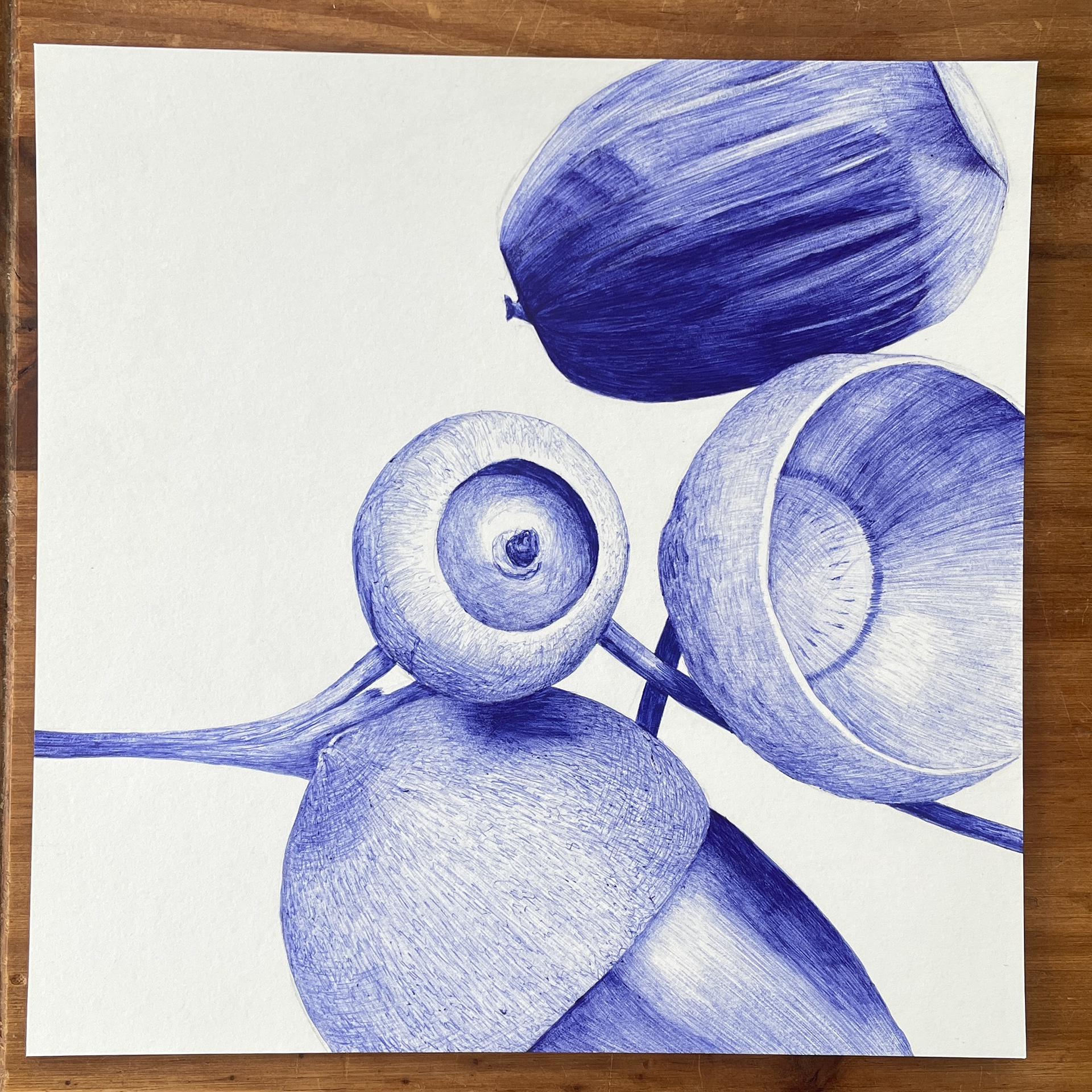 Forêt, Dessin d'observation à main levée, stylo bille sur papier canson 180g, grain léger. 20x20 cm.