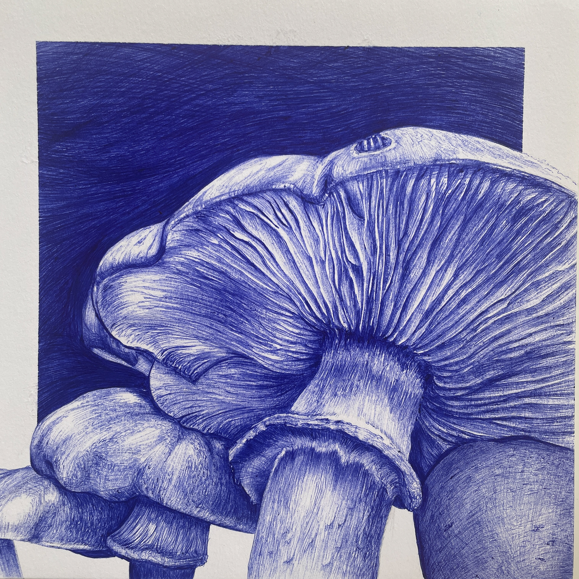 Terre, Dessin d'observation à main levée, stylo bille sur papier canson 180g, grain léger. 20x20 cm.